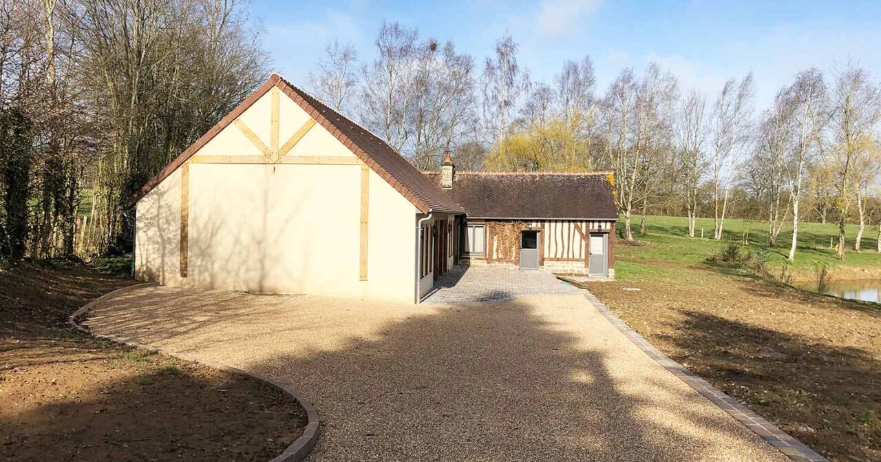 The construction took a total of 24 months from start to finish, including the additional works requested such as the renovation of the existing adjacent colombage gite. There were also additional, unforeseen groundworks, due to the discovery of an underground water source which meant that a more sophisticated drainage system was put in place involving a sump pump under the pool floor itself. The plans originally produced by the architect evolved slightly over time regarding the interior layout but this fortunately did not effect the planning that was already in place.
